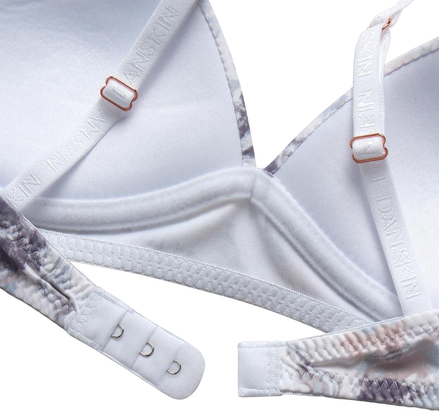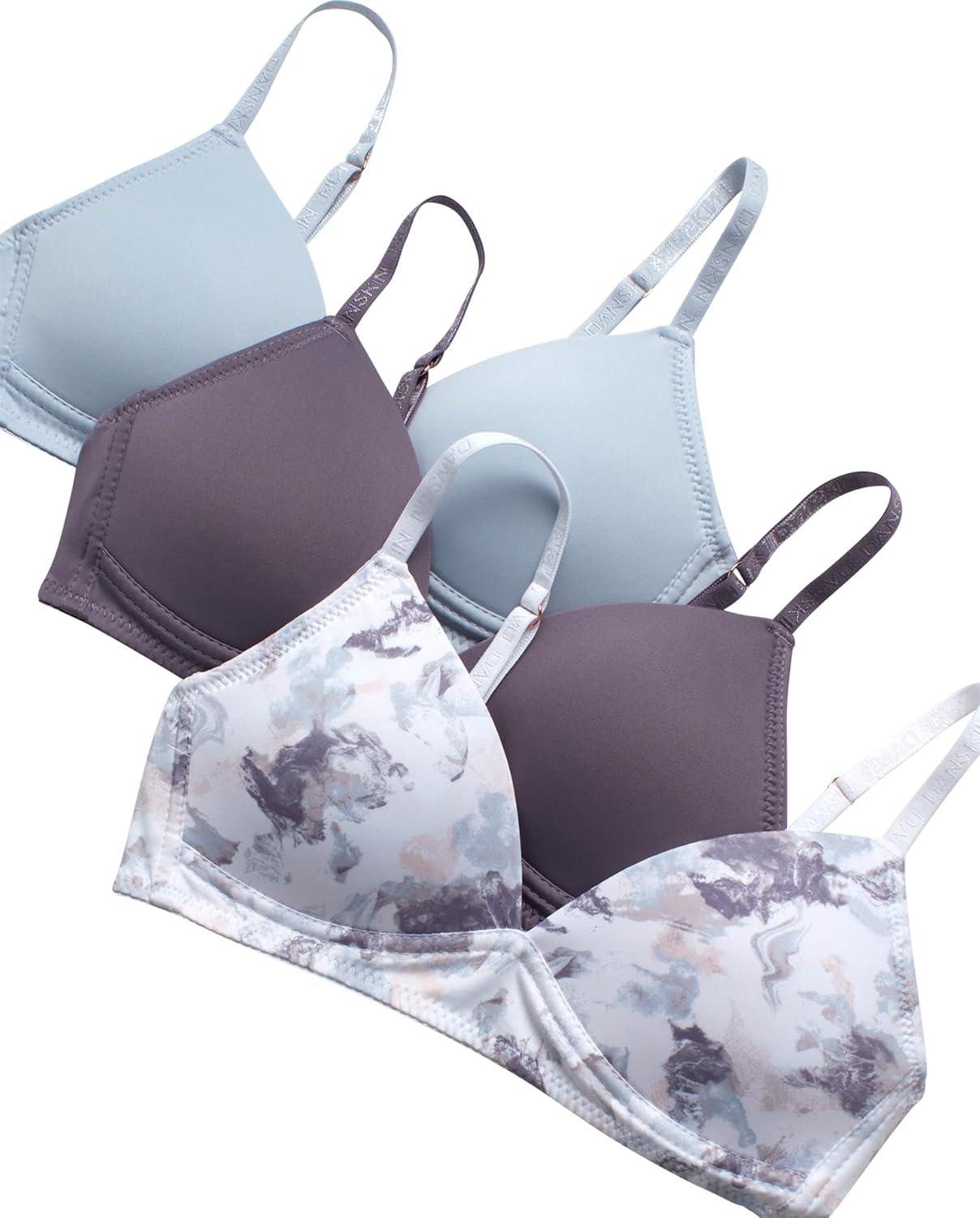 Danskin Girls Training Bra – 3/6 Pack Wirefree Microfiber Molded Cup Bras for Teens with Adjustable Straps (Sizes: 30A-36A)(Textured Print/Grey/Lavender Smoke- 3pk)