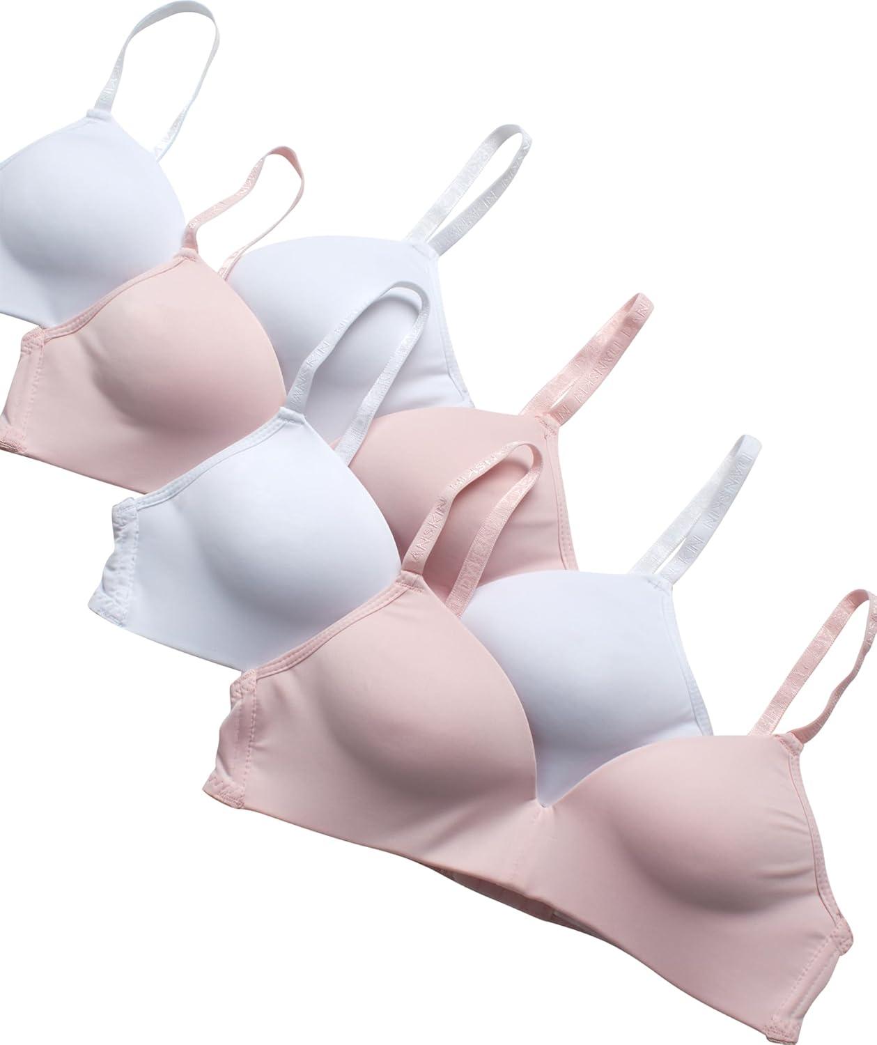 Danskin Girls Training Bra – 4 Pack Wireless Molded Cup Bras for Teens with Adjustable Straps (Sizes 30A-36A)(Pink Bliss/White – Molded)