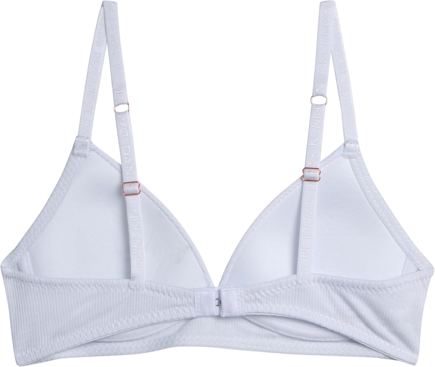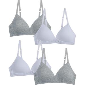 Danskin Girls Training Bra – 4 Pack Wireless Molded Cup Bras for Teens with Adjustable Straps (Sizes 30A-36A)(White/Light Grey Heather – Molded Rib)