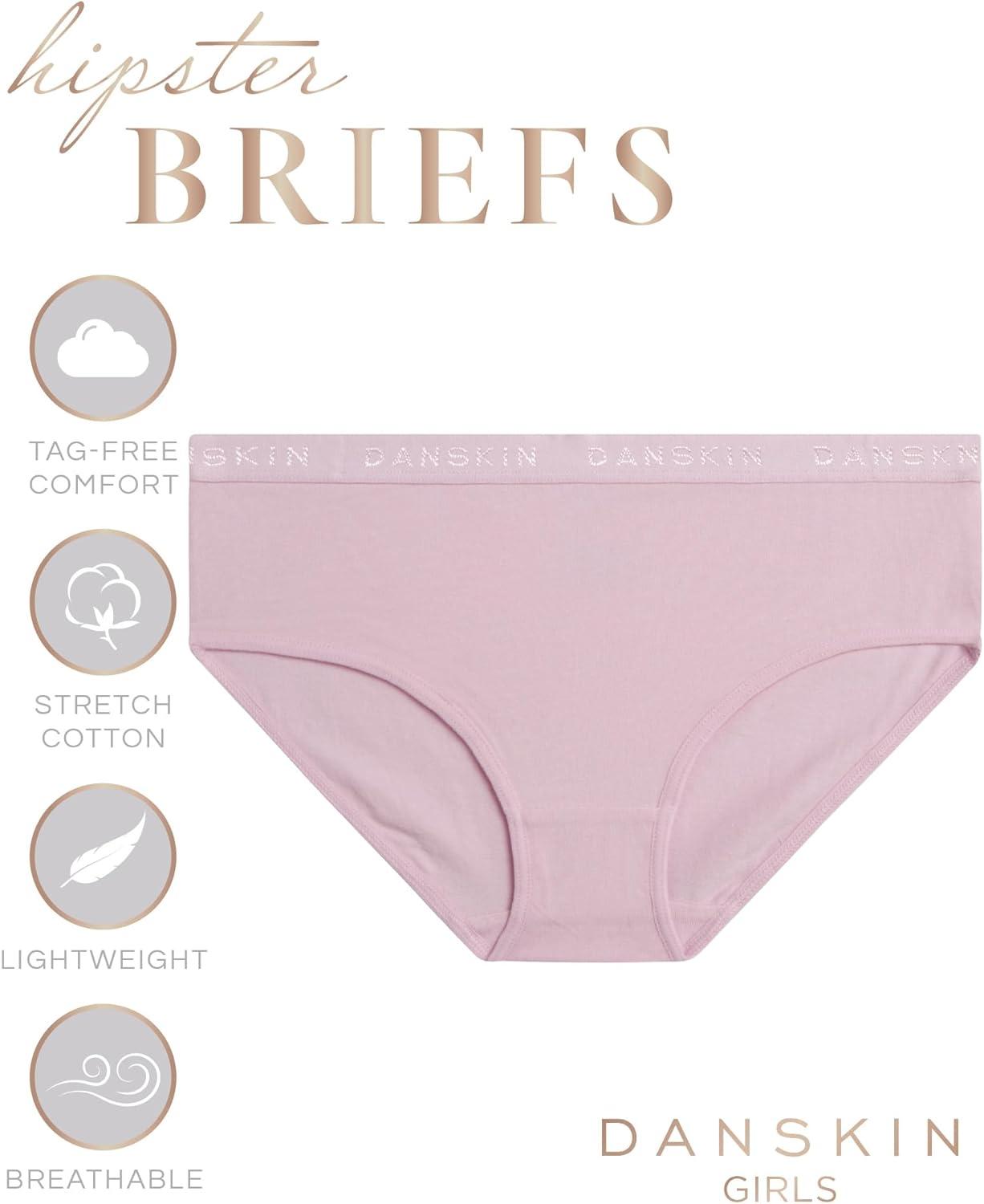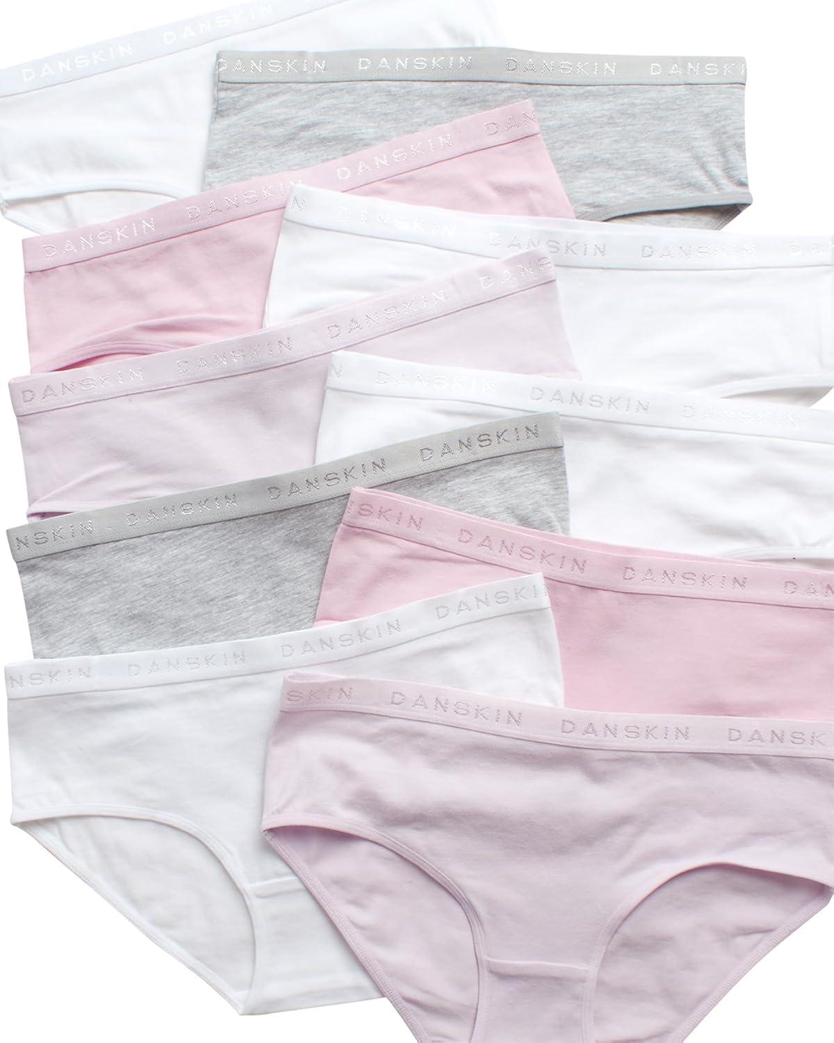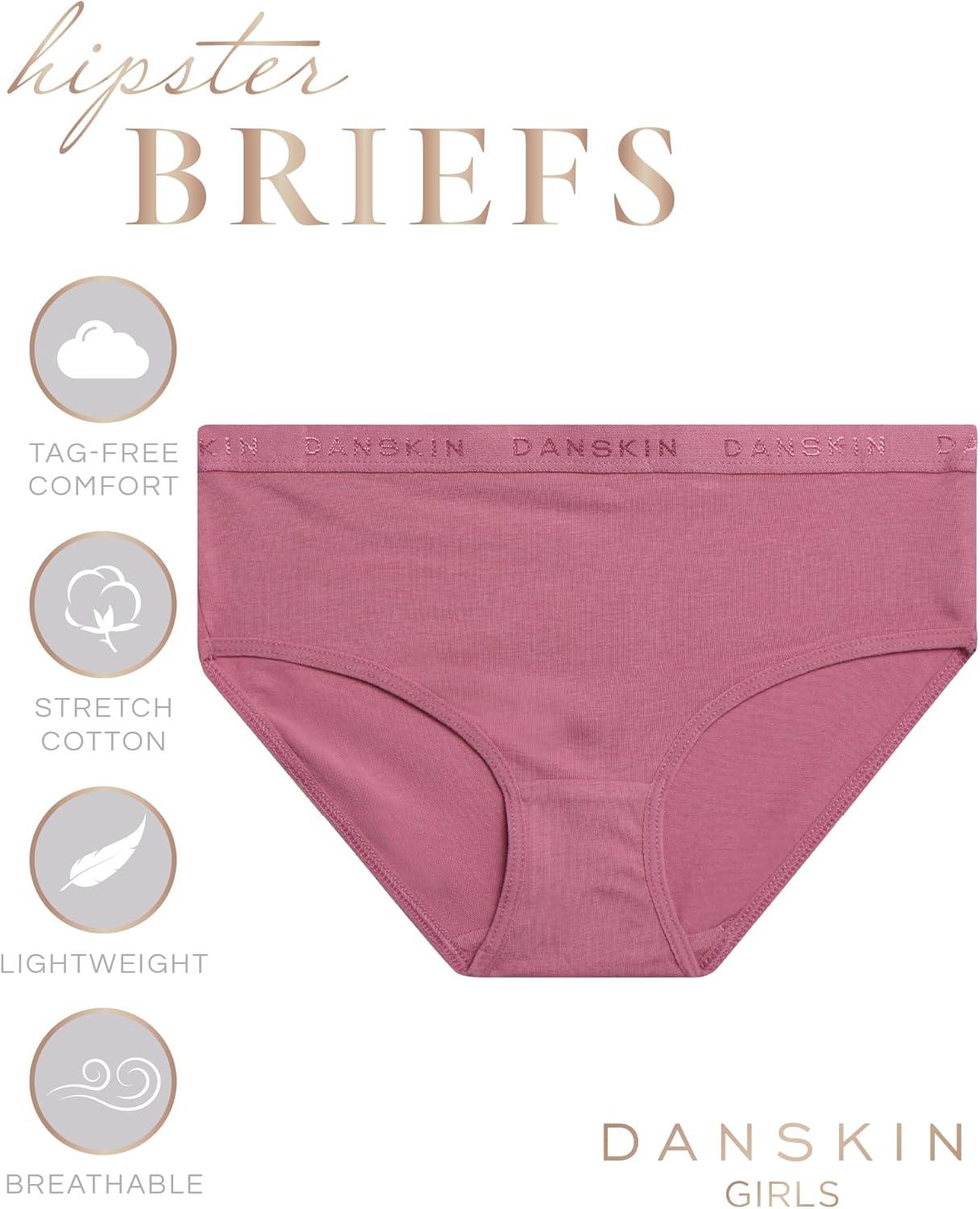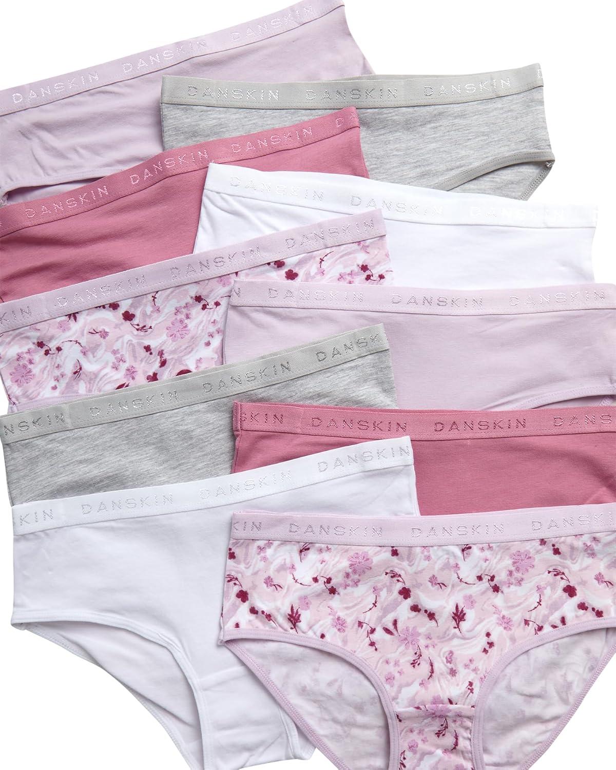 Danskin Girls Underwear Hipster Briefs – 10 Pack Comfort Stretch Breathable Cotton Underwear Hipster Panties for Girls (4-12)(Pink/White/Heather Grey/Dark Pink)