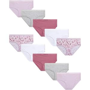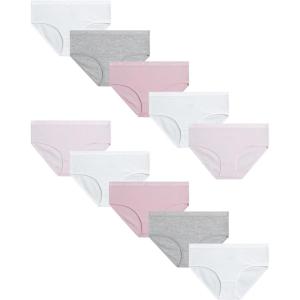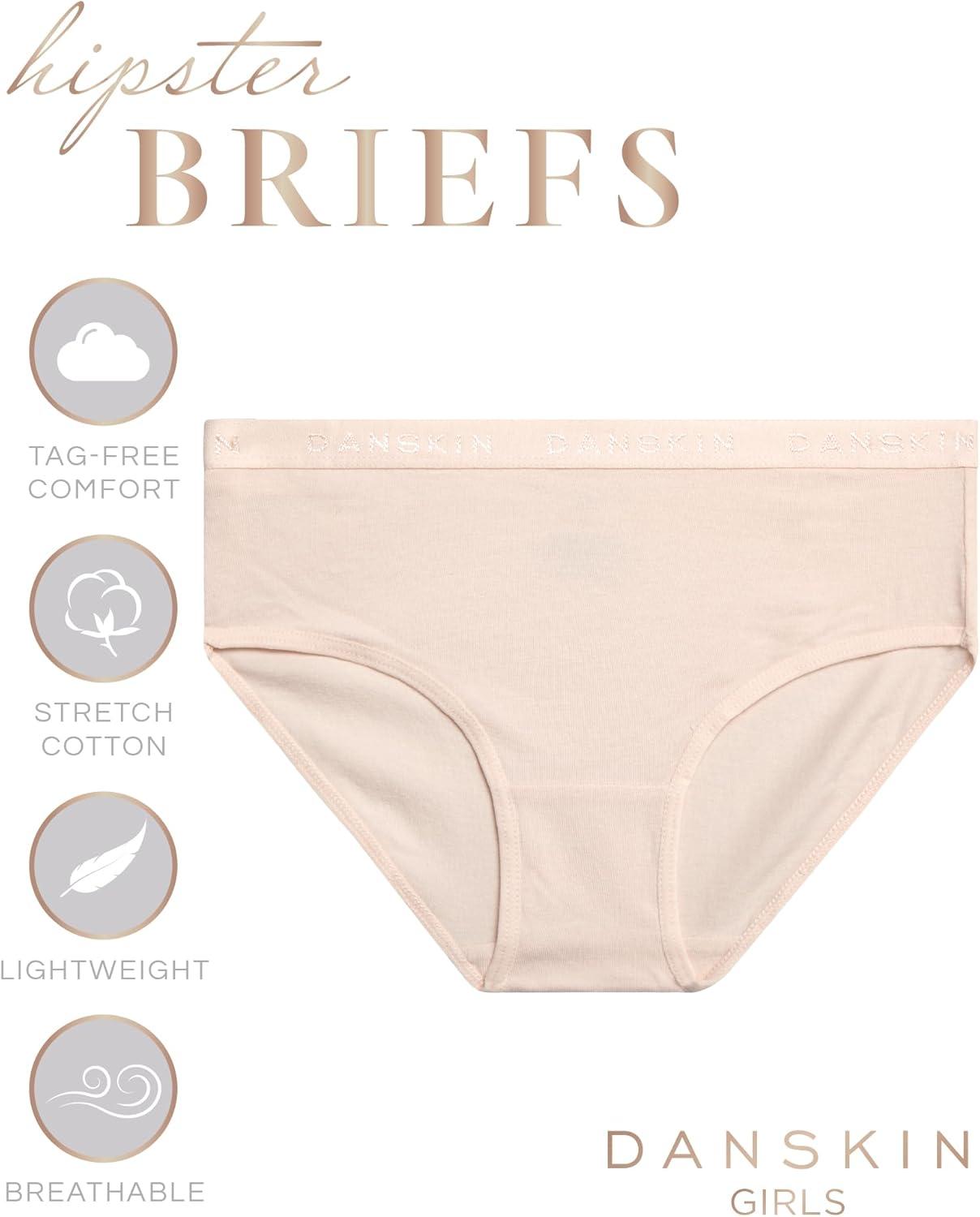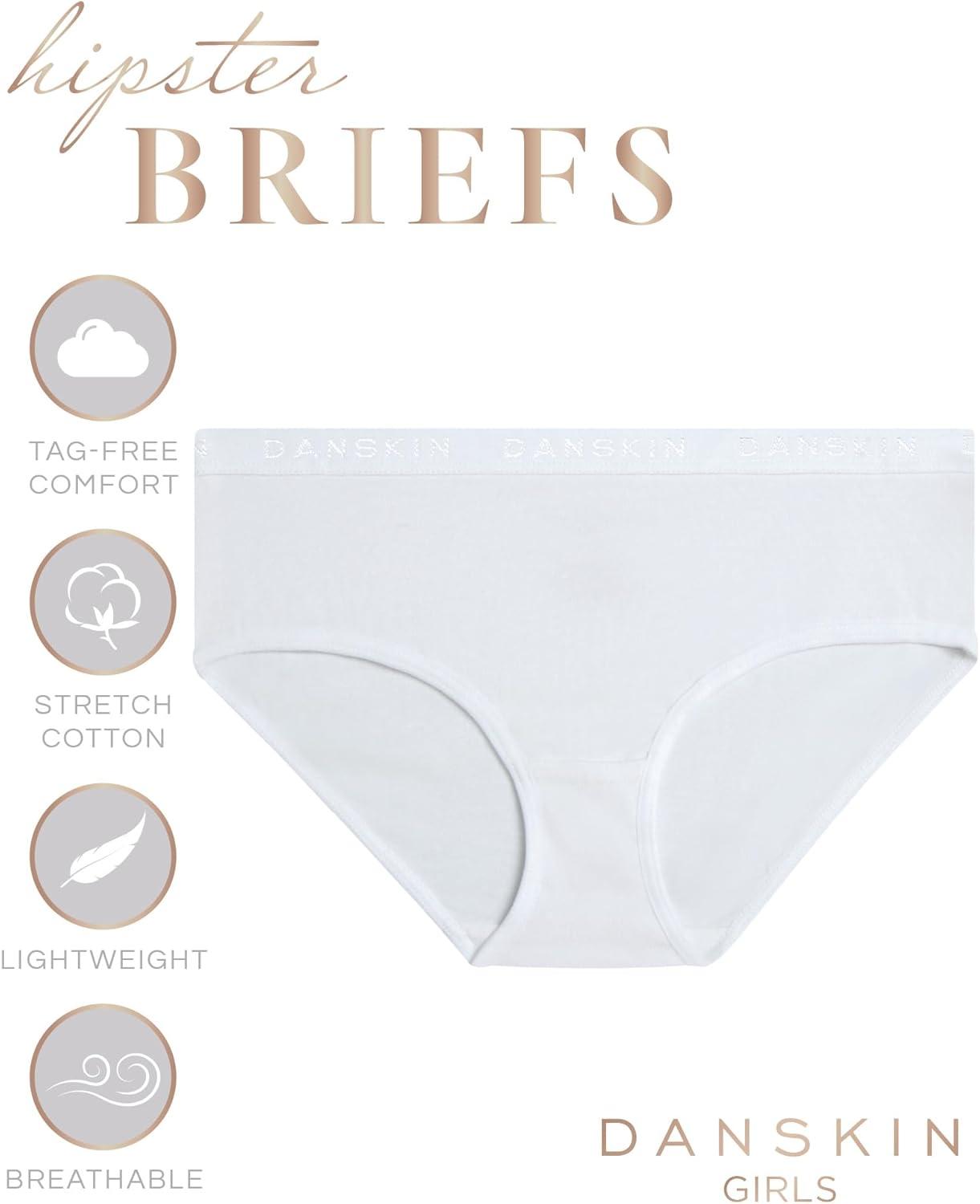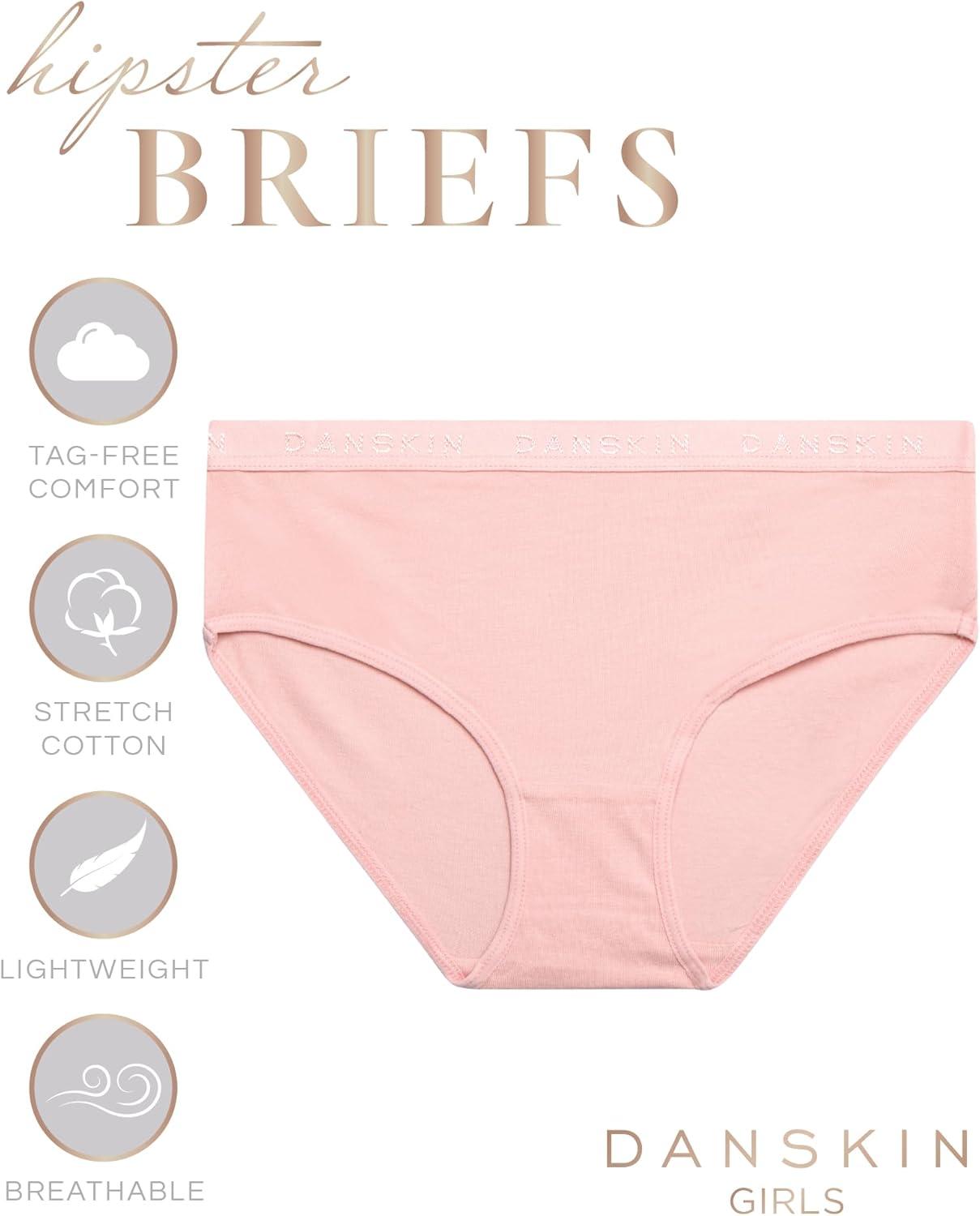 Danskin Girls Underwear Hipster Briefs – 10 Pack Comfort Stretch Breathable Cotton Underwear Hipster Panties for Girls (4-12)(Pink/White/Heather Grey/Dark Pink)