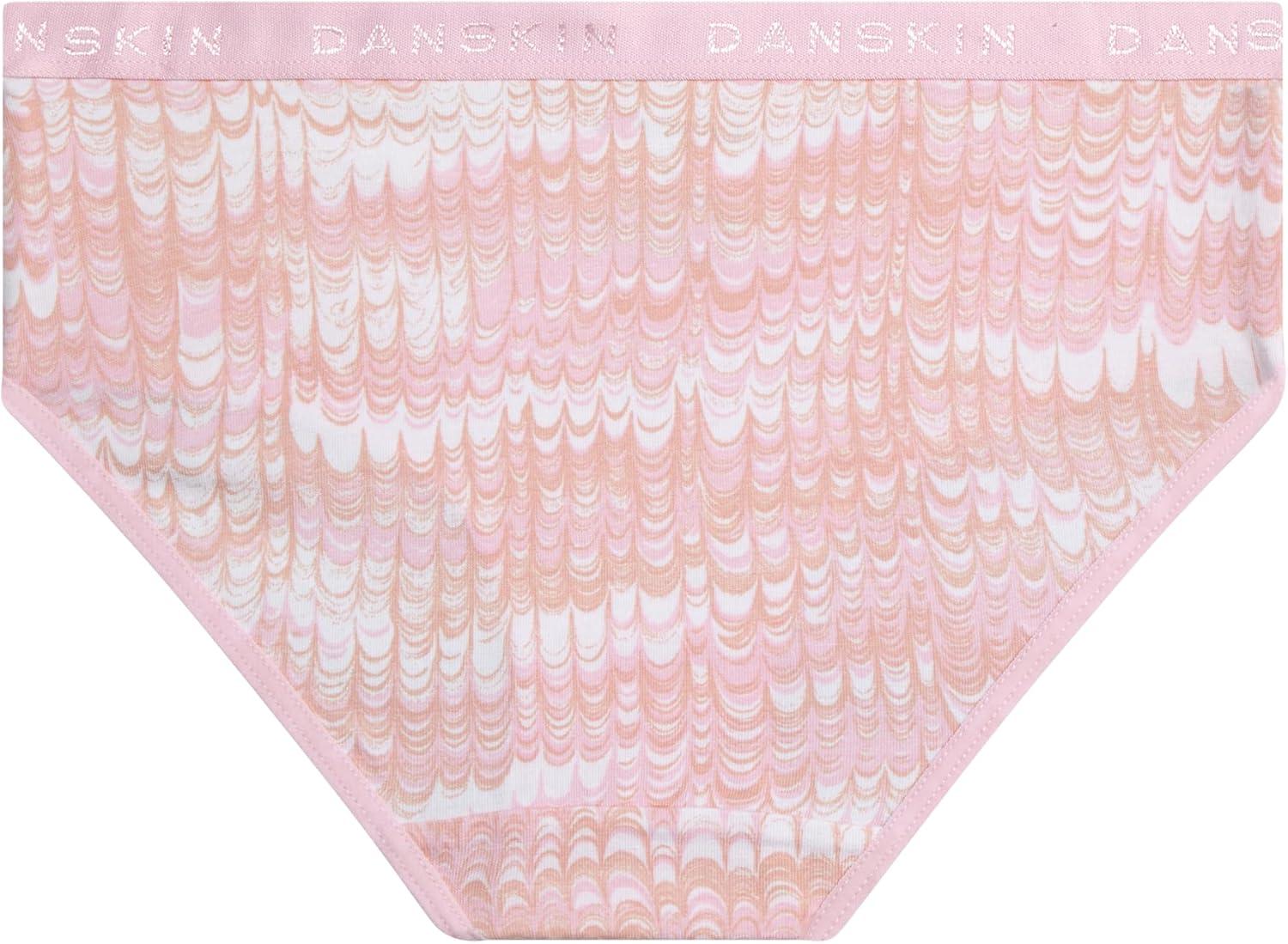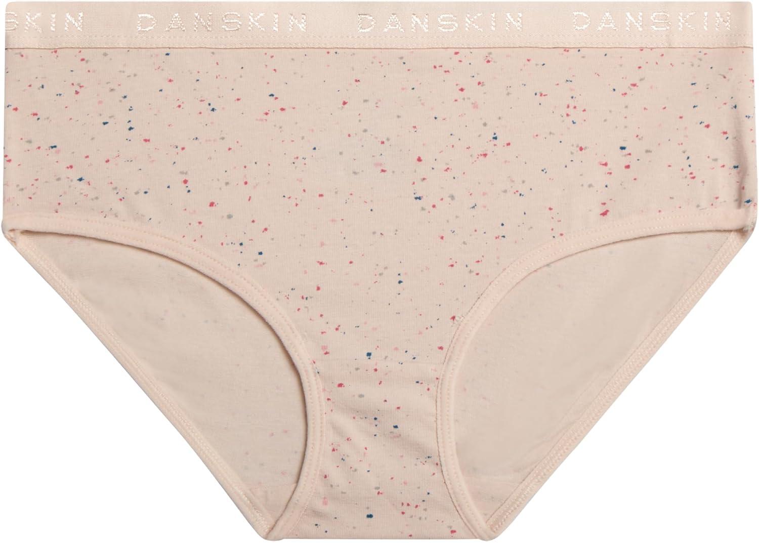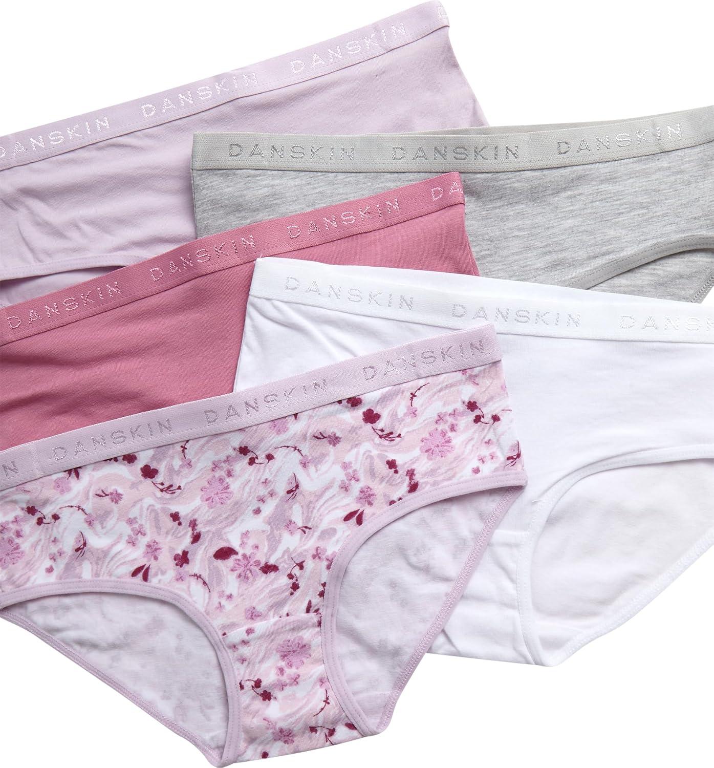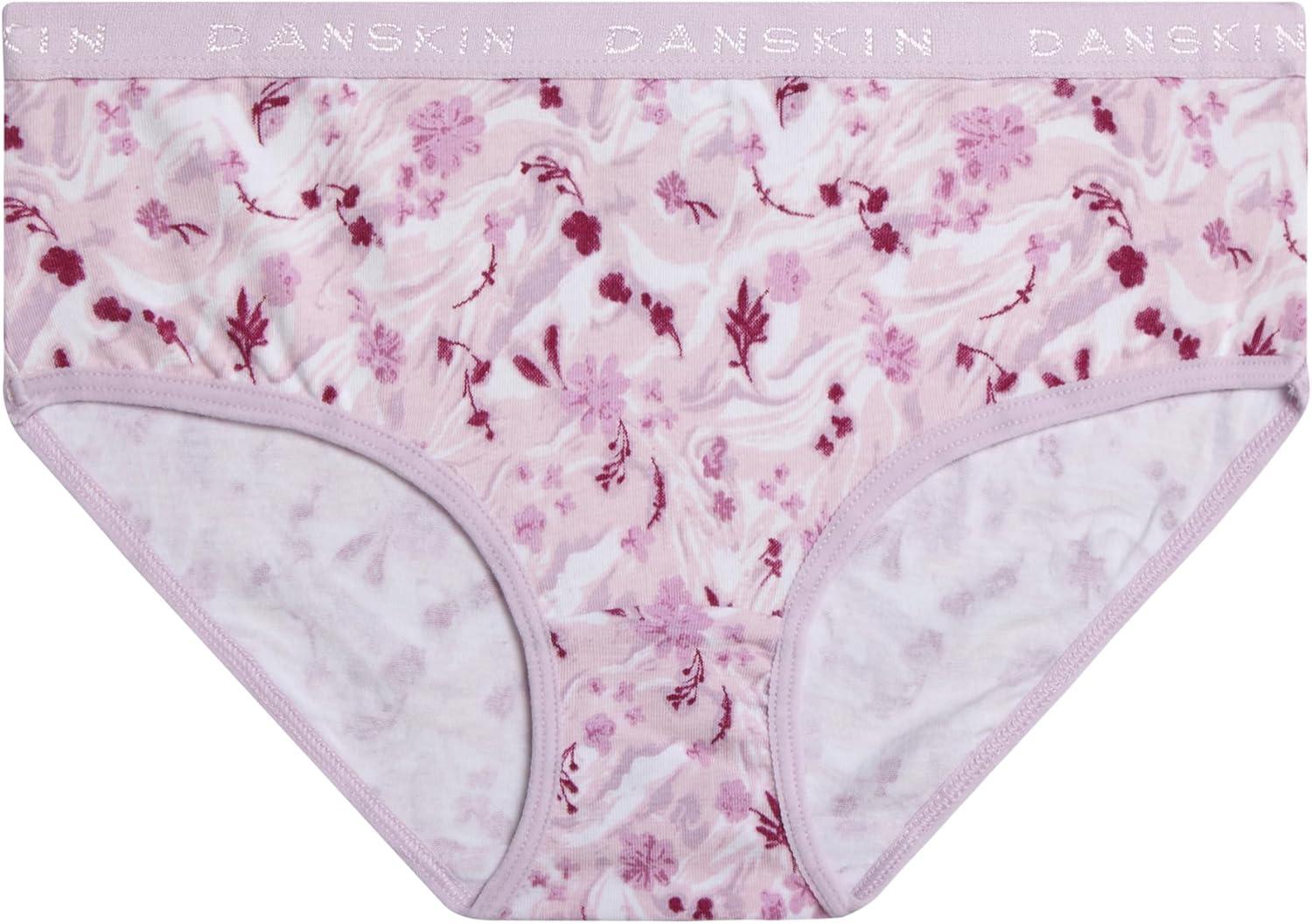 Danskin Girls Underwear Hipster Briefs – 5 Pack Comfort Stretch Breathable Cotton Underwear Hipster Panties for Girls (4-12)(Print/Dusty Pink/Pink Thistle/White/Light Grey Heather)