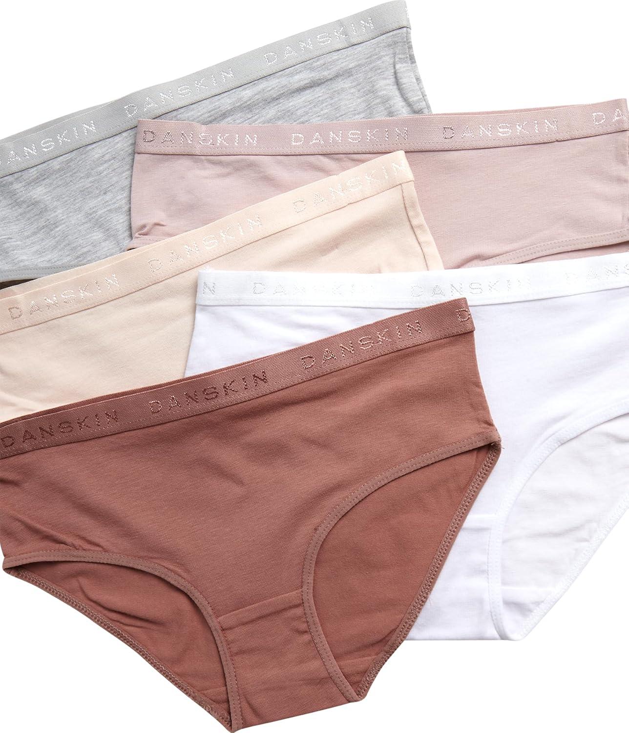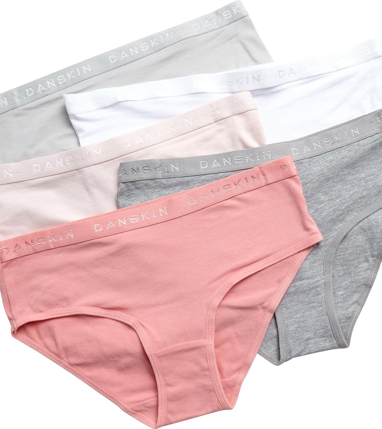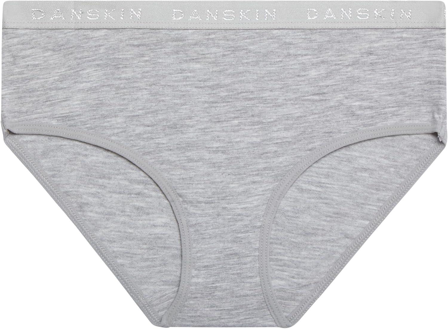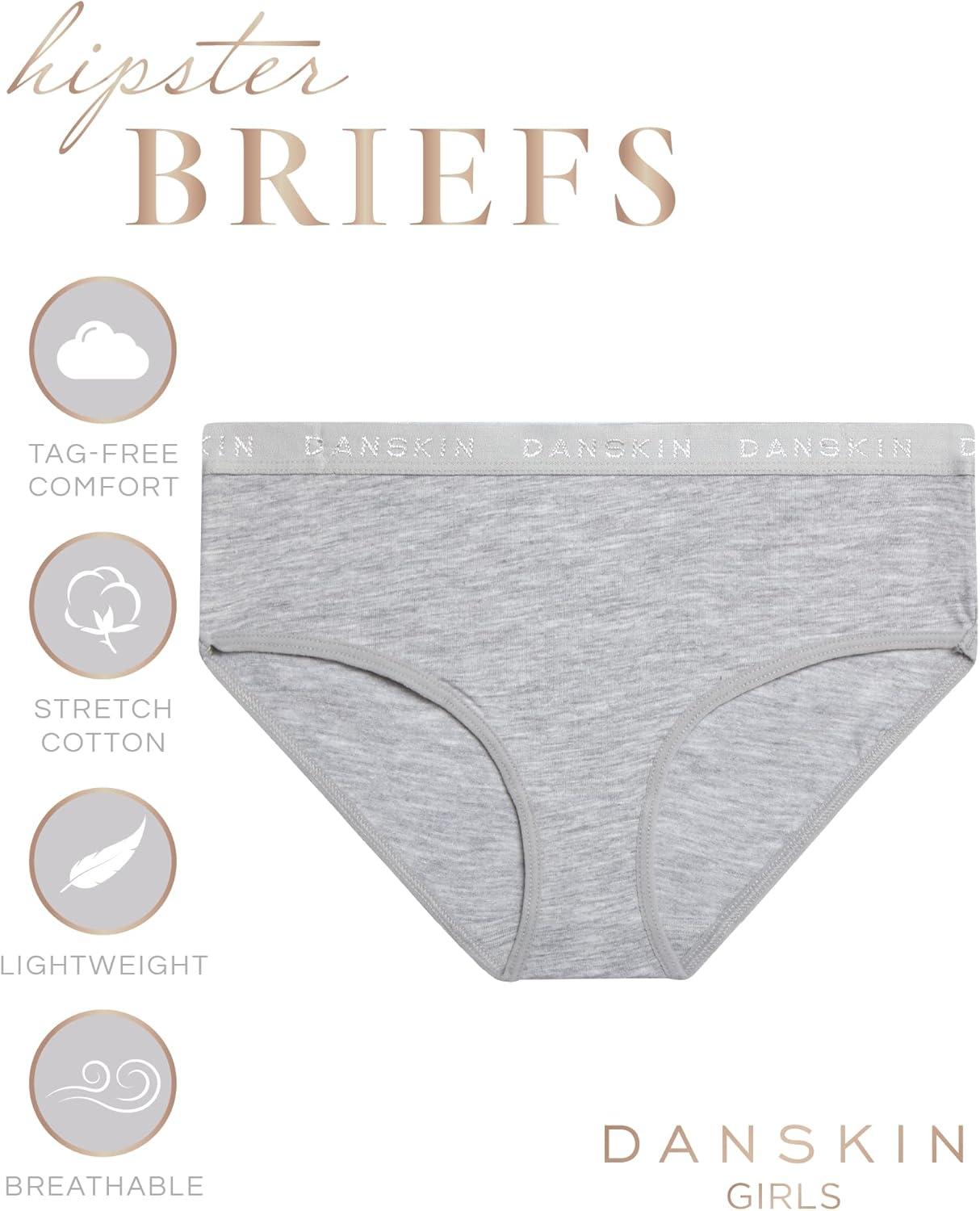 Danskin Girls Underwear Hipster Briefs – 5 Pack Comfort Stretch Breathable Cotton Underwear Hipster Panties for Girls (4-12)(Heather Grey/White/Blush/Brown)