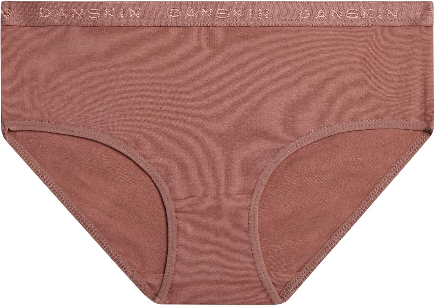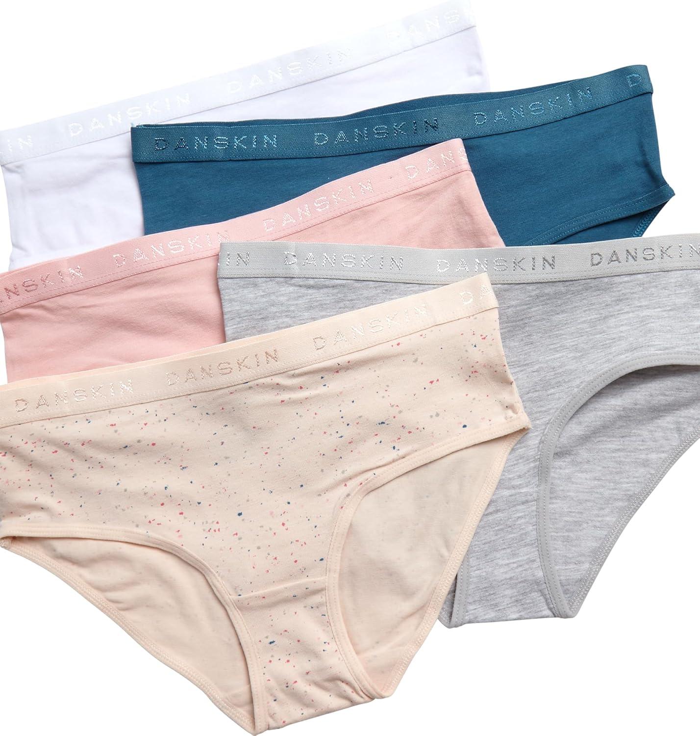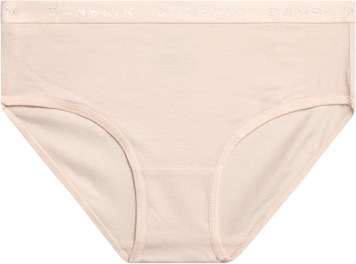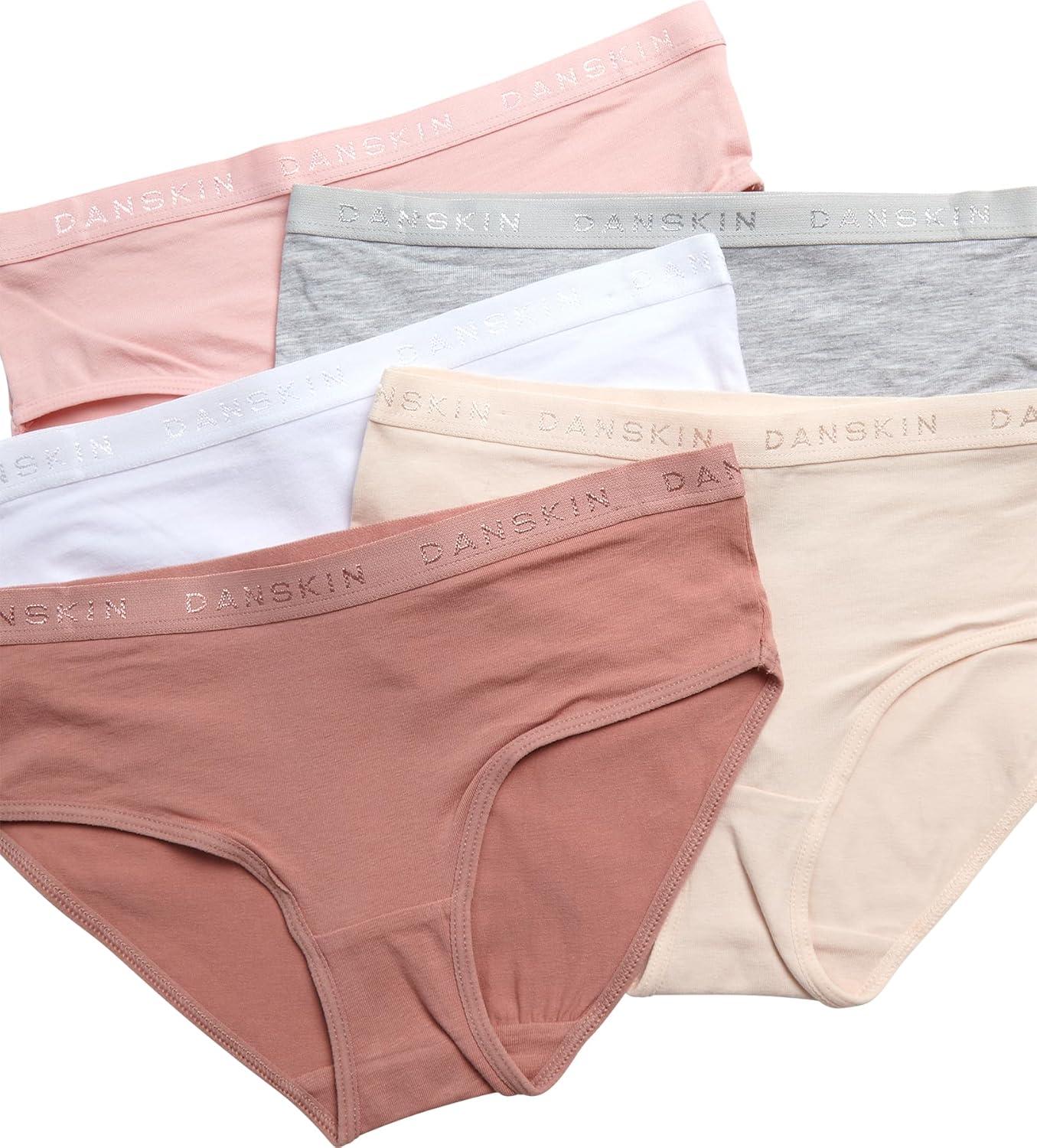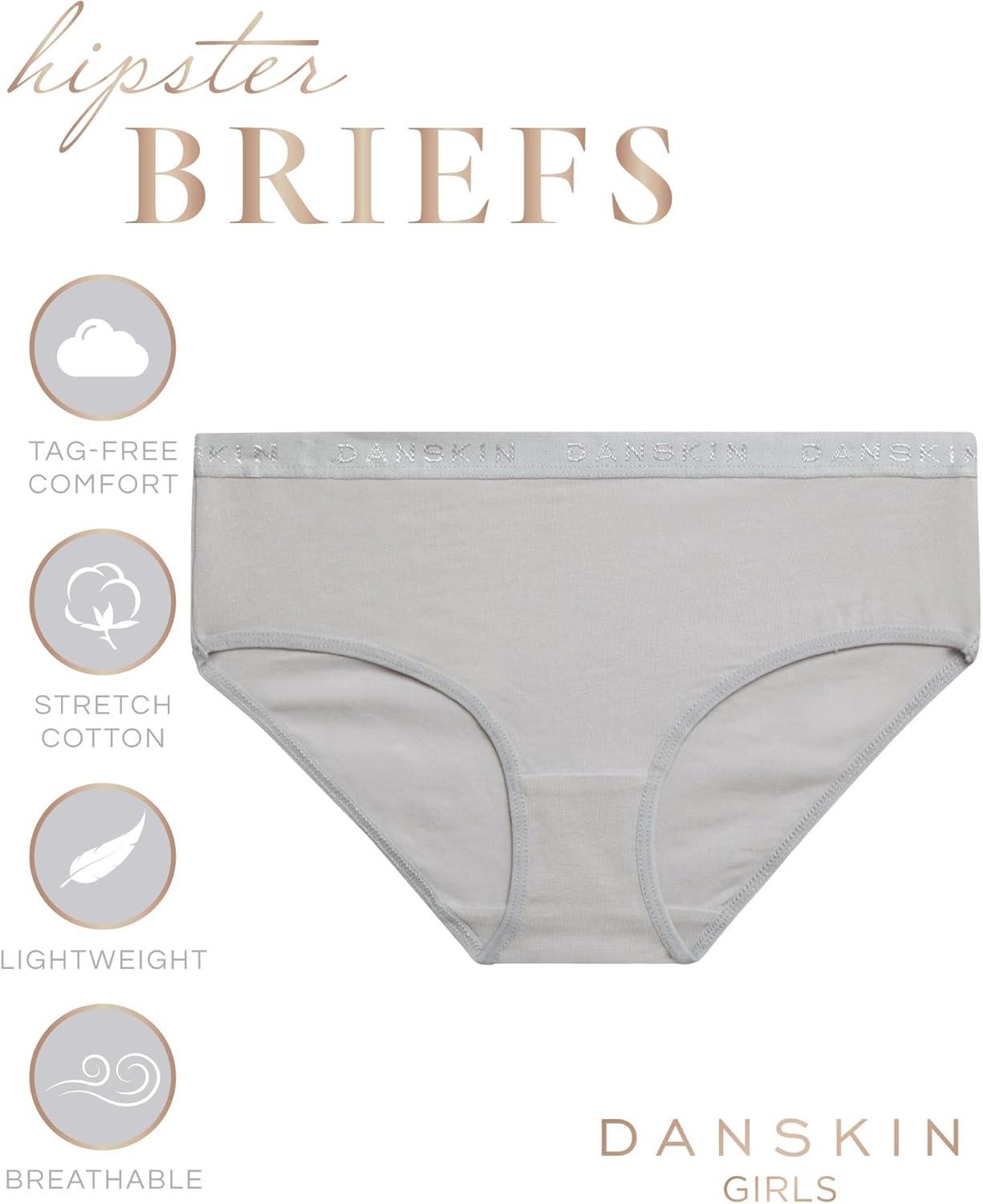 Danskin Girls Underwear Hipster Briefs – 5 Pack Comfort Stretch Breathable Cotton Underwear Hipster Panties for Girls (4-12)(Heather Grey/White/Blush/Brown)