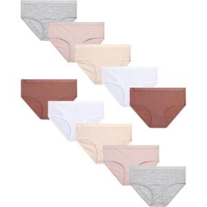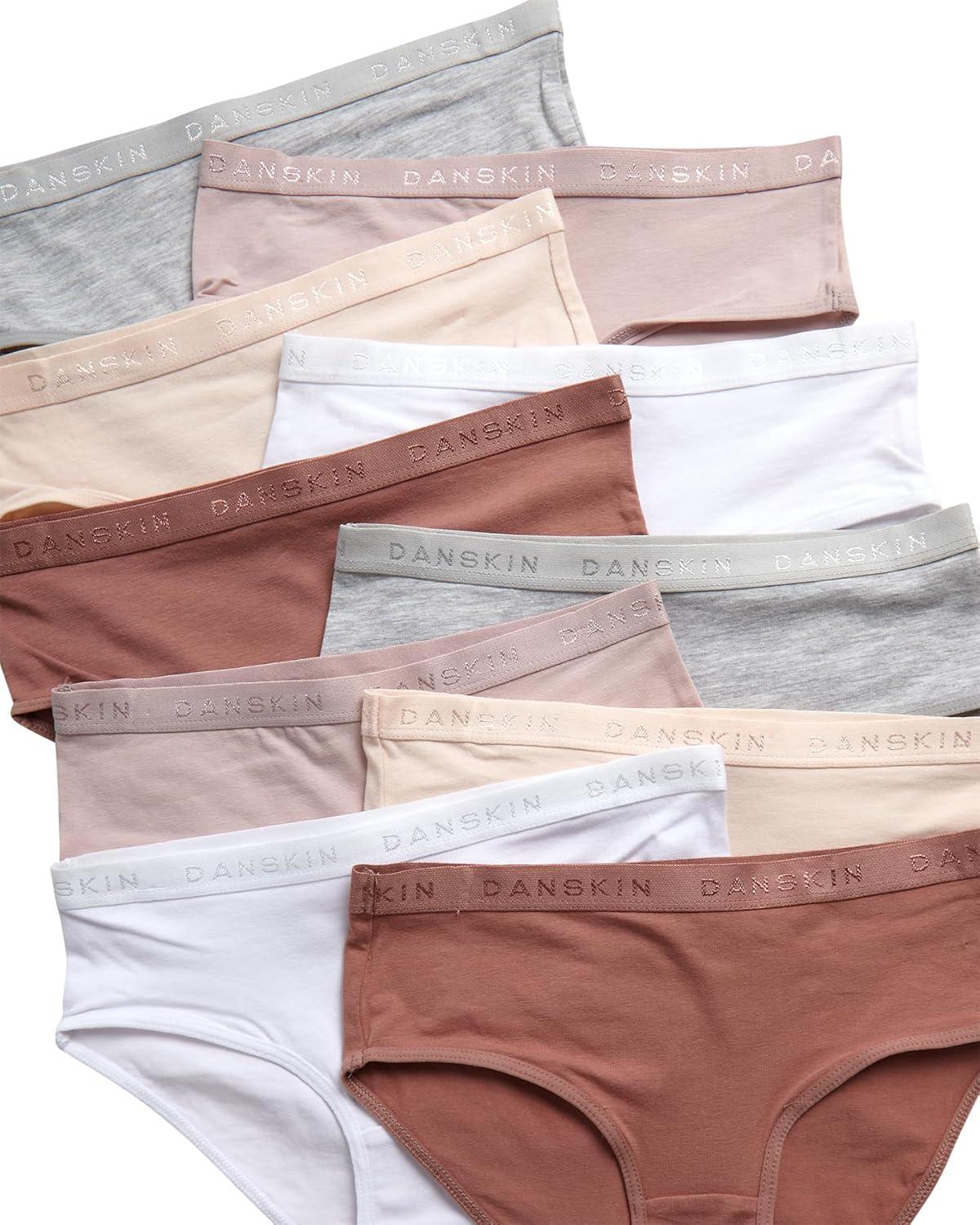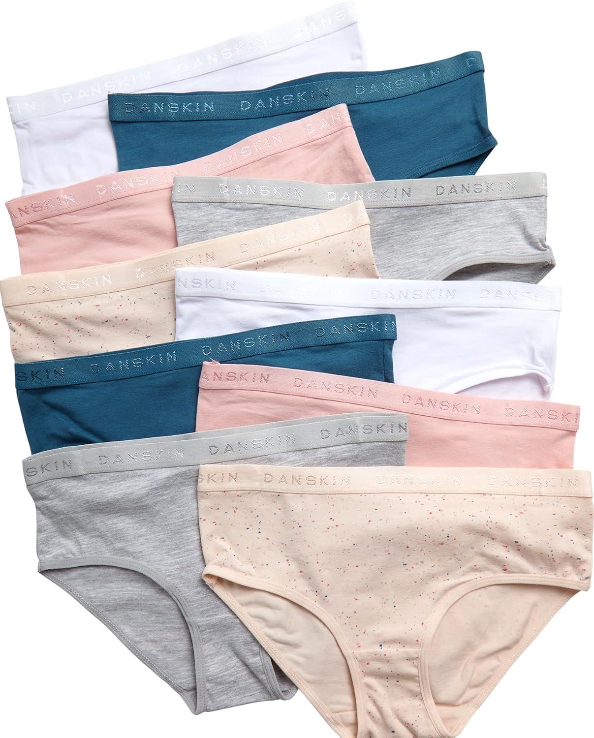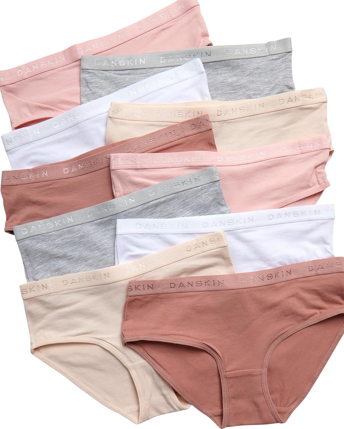 Danskin Girls Underwear Hipster Briefs – 10 Pack Comfort Stretch Breathable Cotton Underwear Hipster Panties for Girls (4-12)(Heather Grey/White/Blush/Brown)
