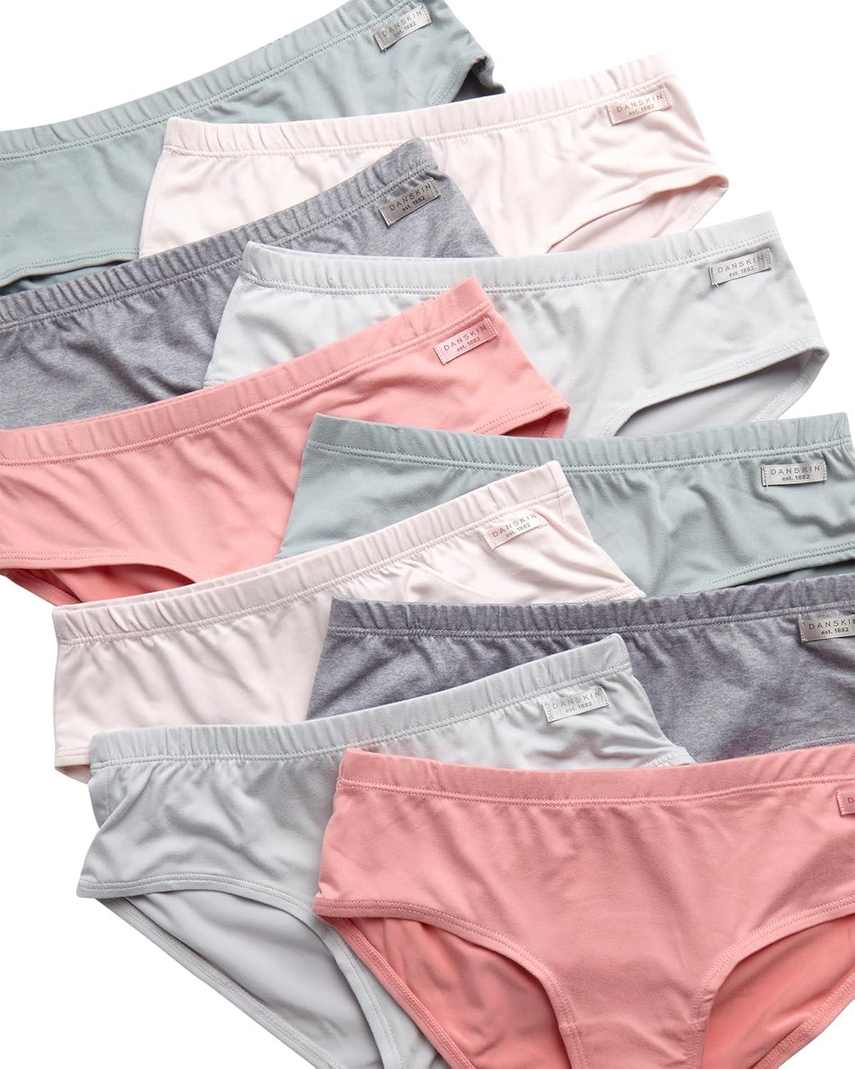Danskin Girls Underwear Hipster Briefs – 10 Pack Comfort Stretch Breathable Cotton Underwear Hipster Panties for Girls (4-12)(Sea/Grey/Coral/Blush/Heather Grey)