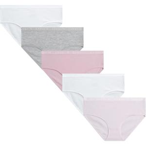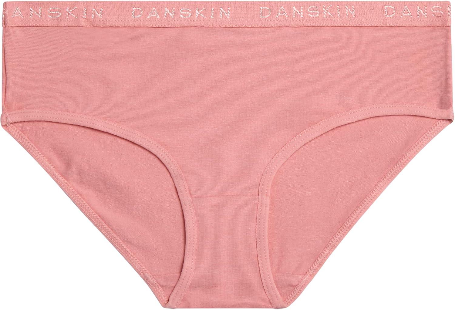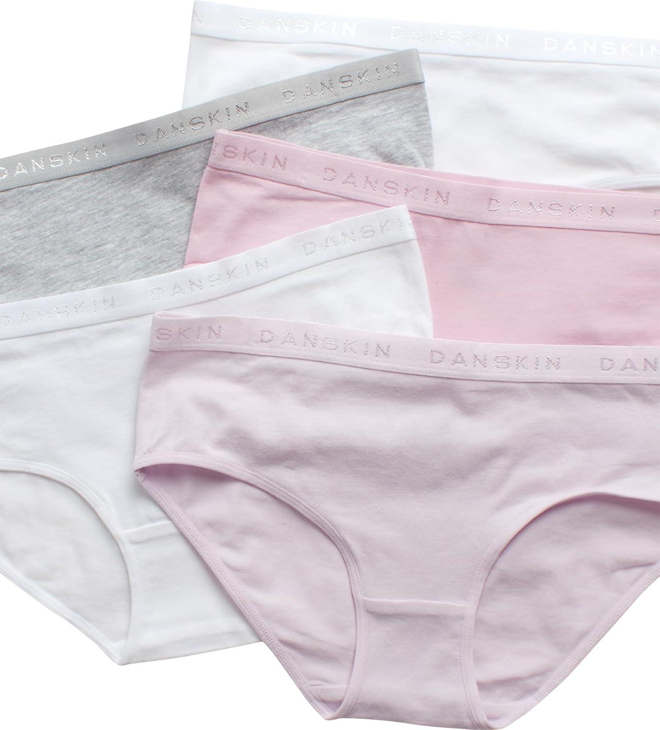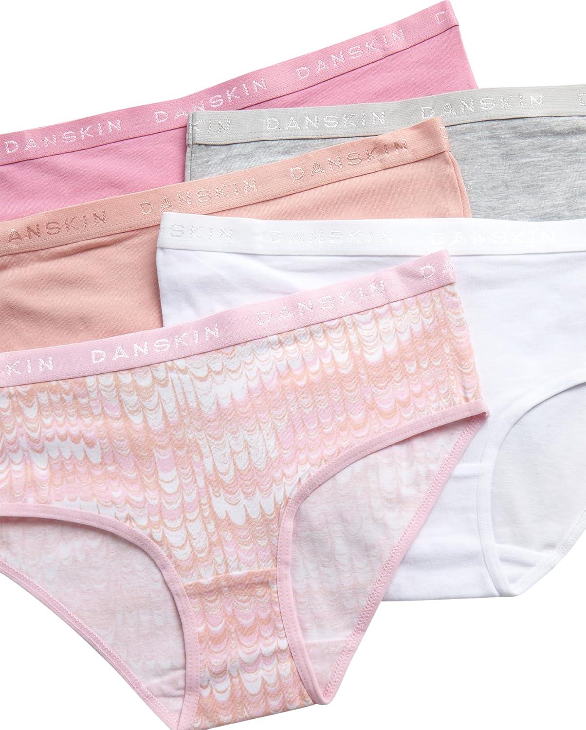 Danskin Girls Underwear Hipster Briefs – 5 Pack Comfort Stretch Breathable Cotton Underwear Hipster Panties for Girls (4-12)(Pink/White/Heather Grey/Dark Pink)