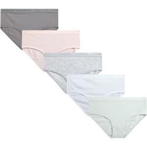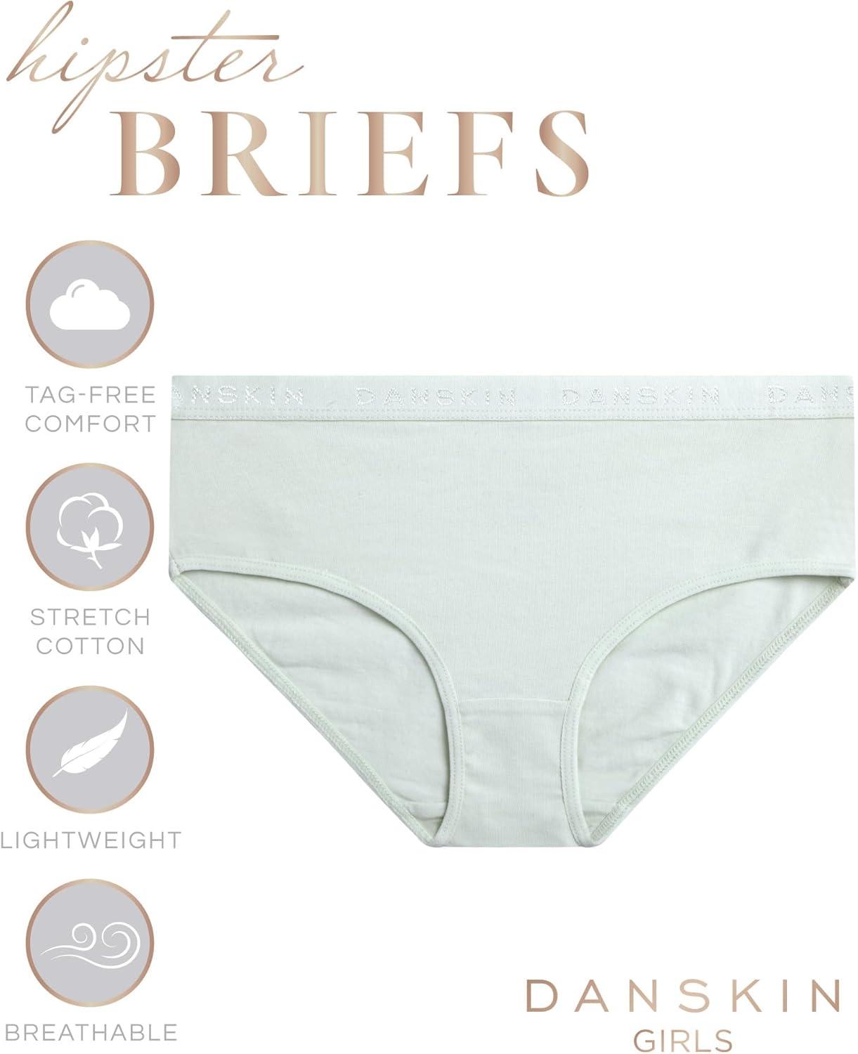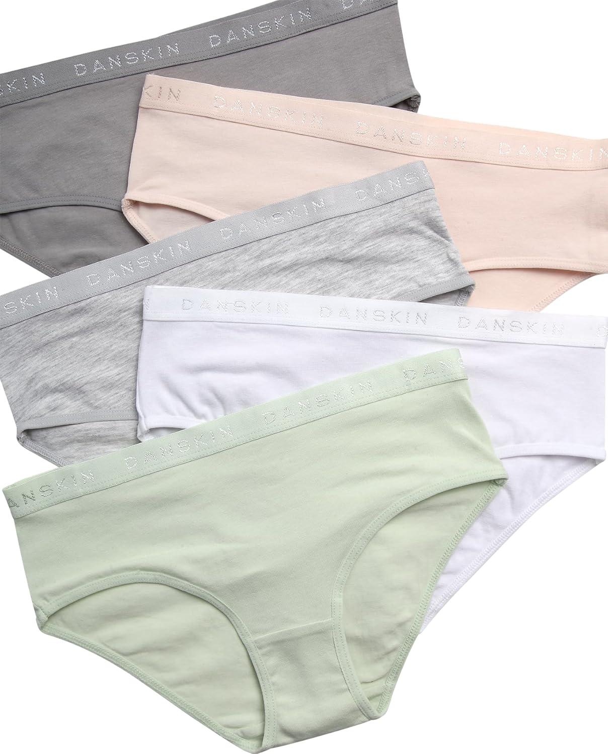 Danskin Girls Underwear Hipster Briefs – 5 Pack Comfort Stretch Breathable Cotton Underwear Hipster Panties for Girls (4-12)(Sage/White/Grey/Pink/Heather Grey)