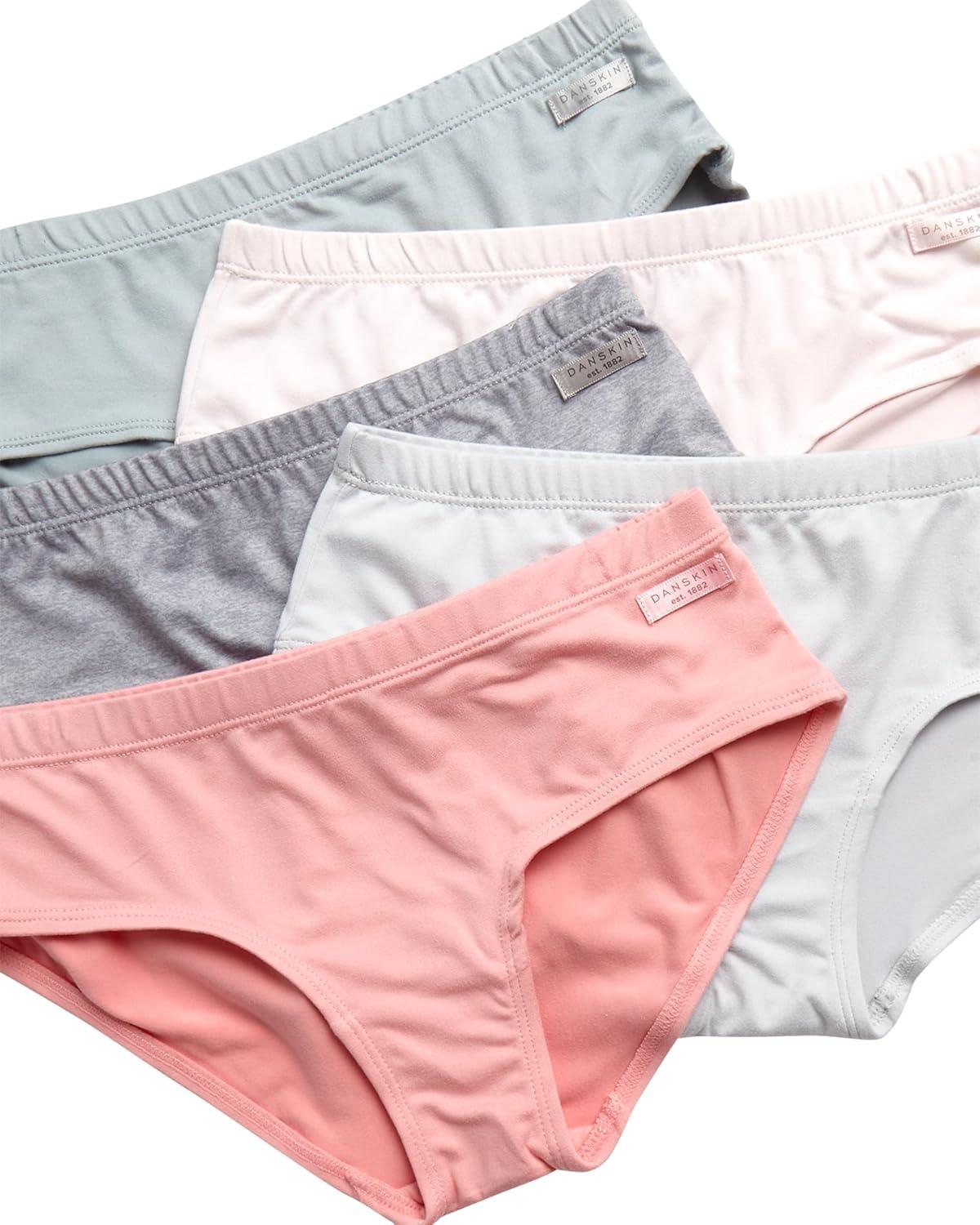 Danskin Girls Underwear Hipster Briefs – 5 Pack Comfort Stretch Breathable Cotton Underwear Hipster Panties for Girls (4-12)(Sea/Grey/Coral/Blush/Heather Grey)
