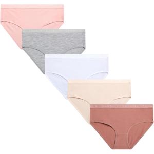 Danskin Girls Underwear Hipster Briefs – 5 Pack Comfort Stretch Breathable Cotton Underwear Hipster Panties for Girls (4-12)(Mauve/Blush/White/Grey/Heather Grey)