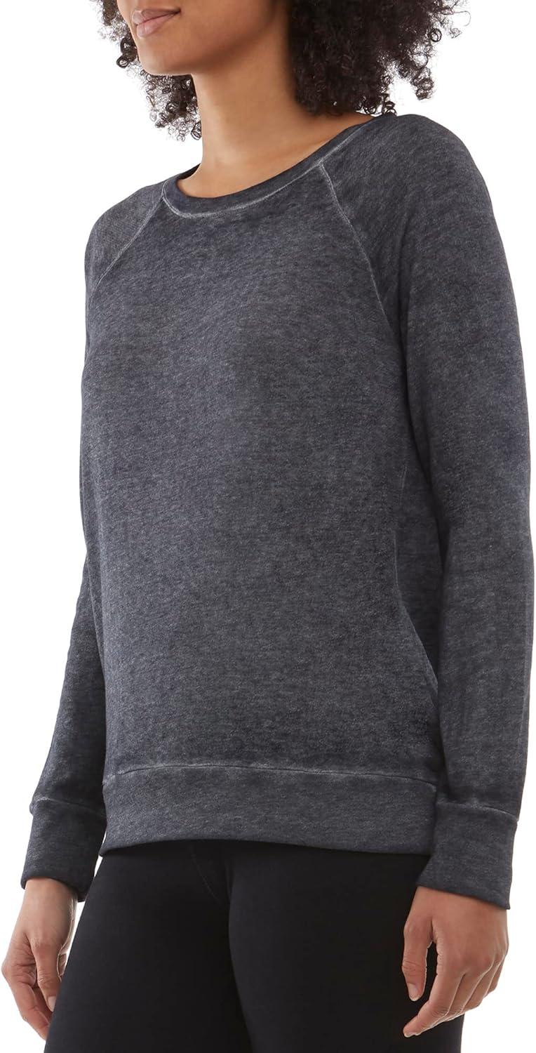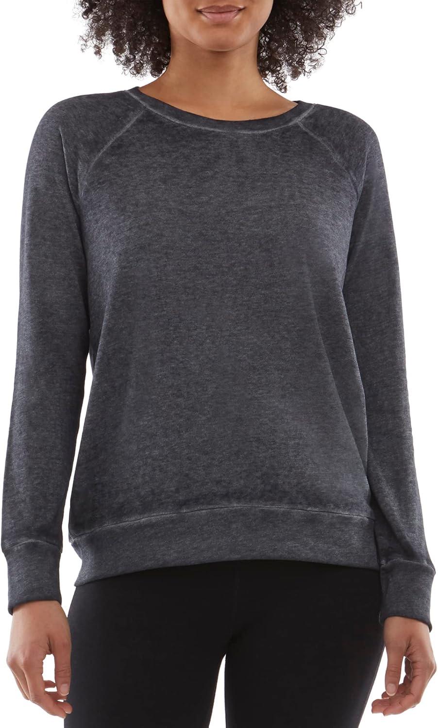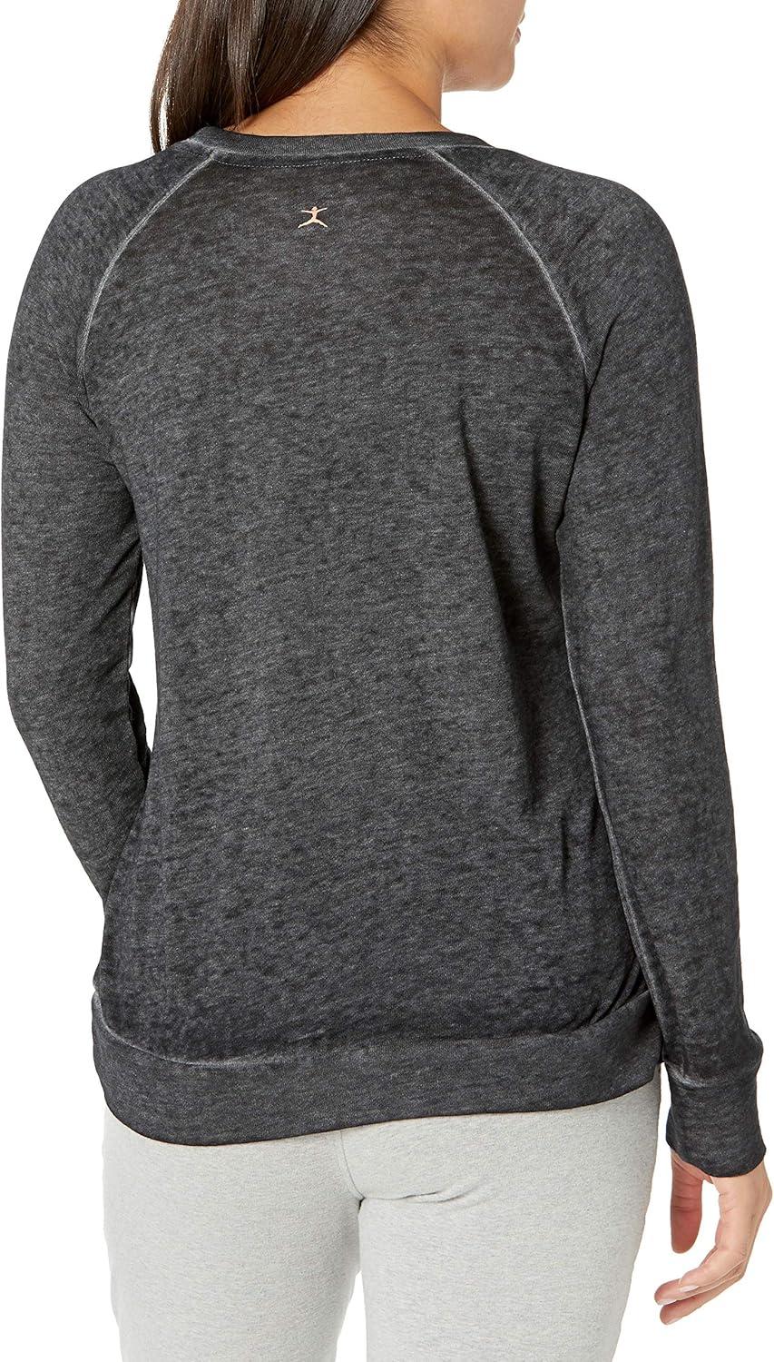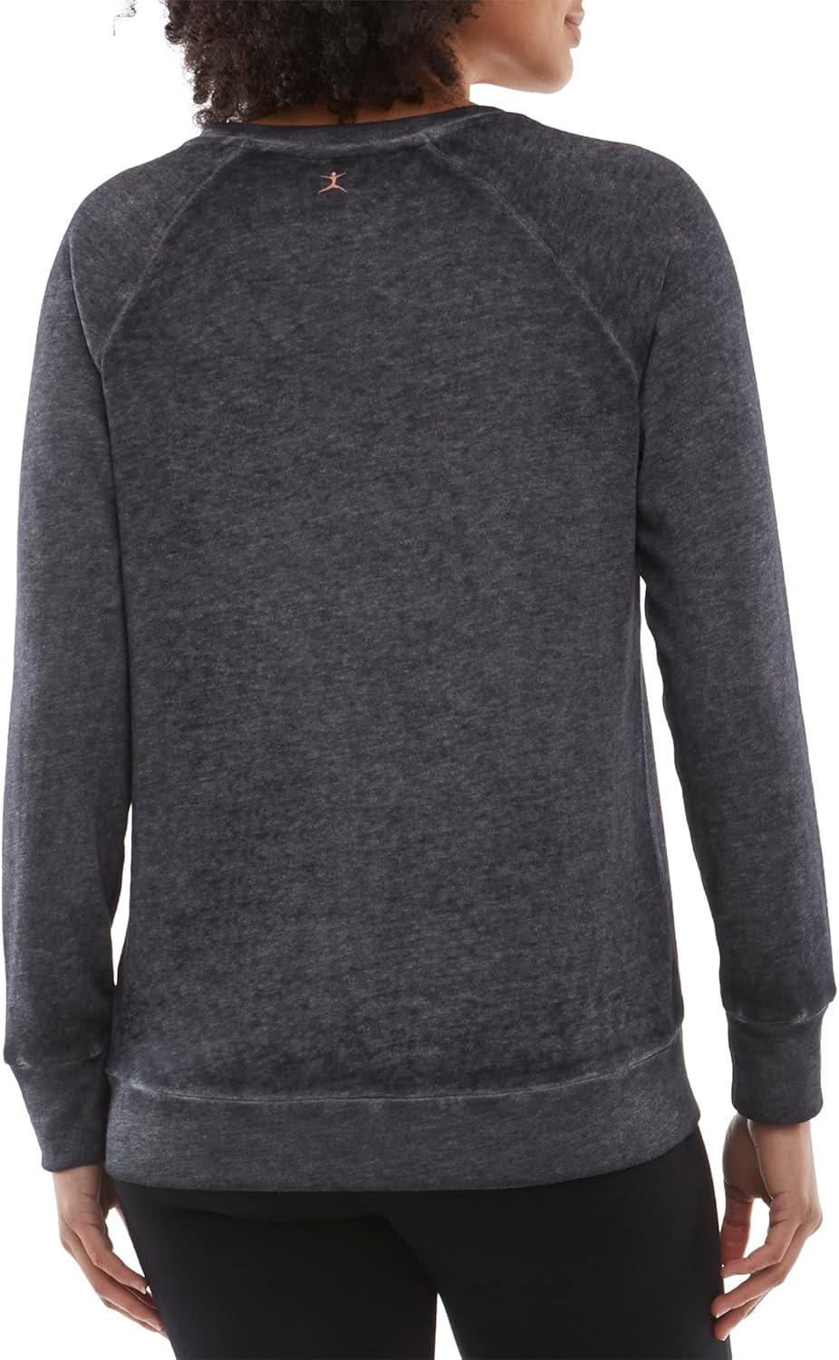 Danskin Women’s Long Sleeve Mineral Wash Pullover Top(Charcoal)