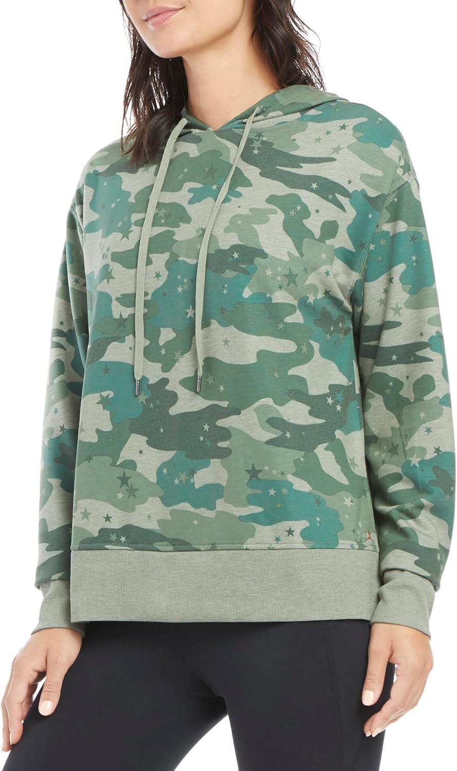 Danskin Women’s Side Slit Pullover Hoodie Sweatshirt(Agave Green Camo)