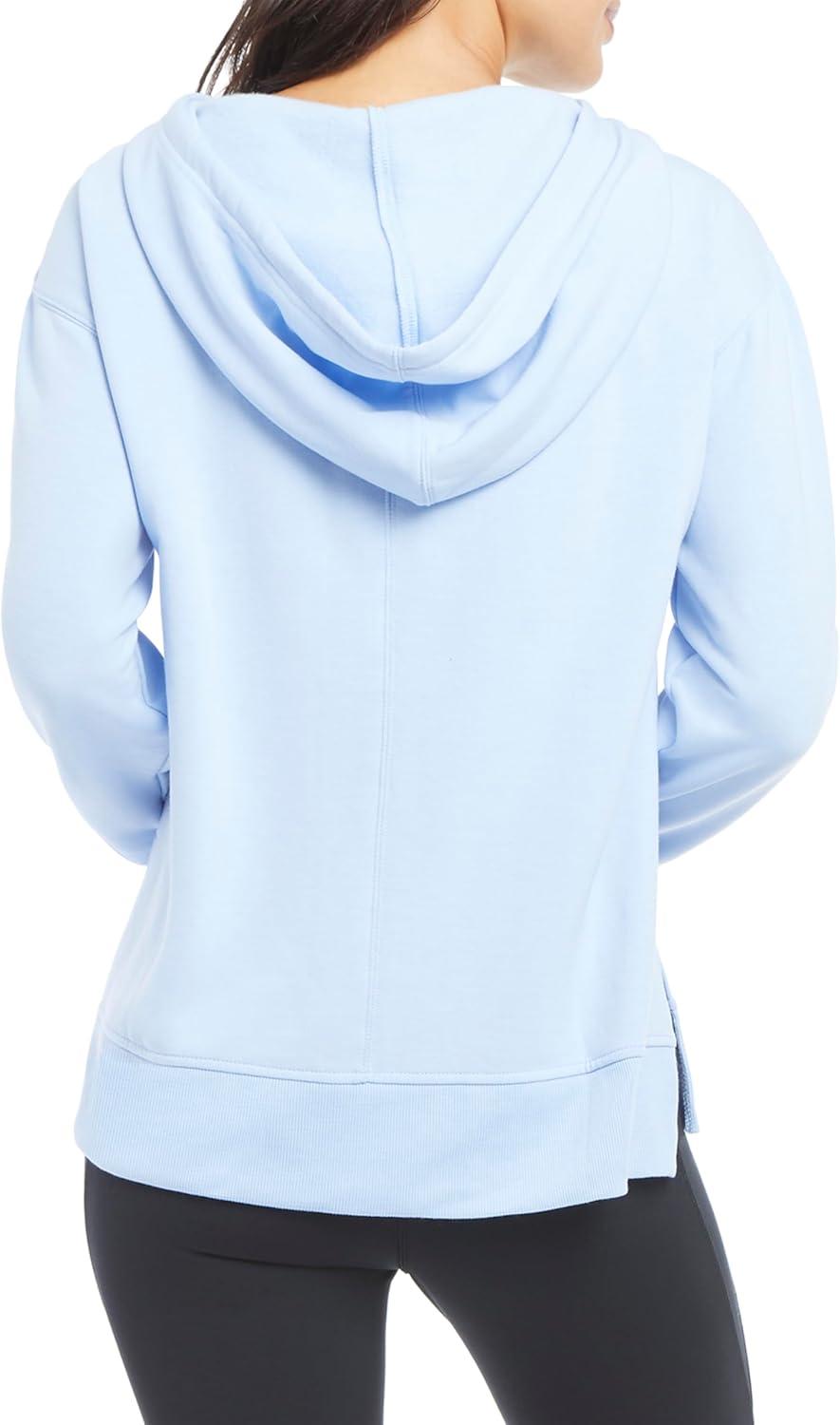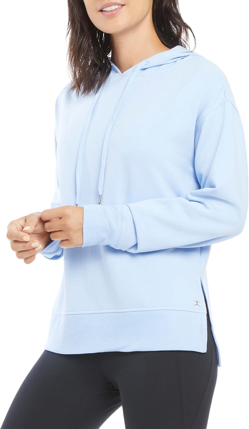 Danskin Women’s Side Slit Pullover Hoodie Sweatshirt(Blue Jay)