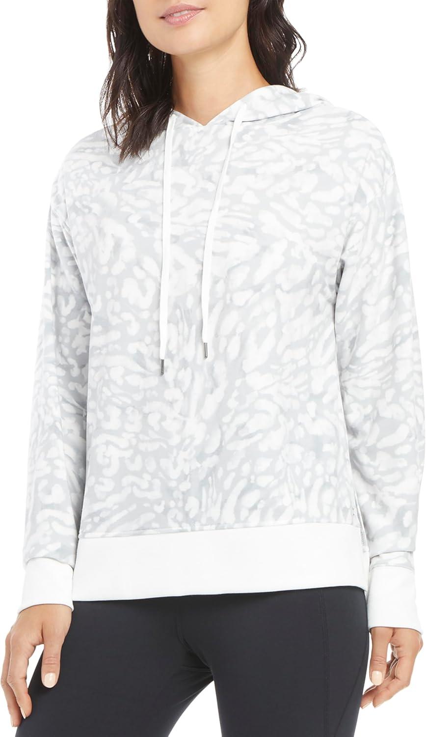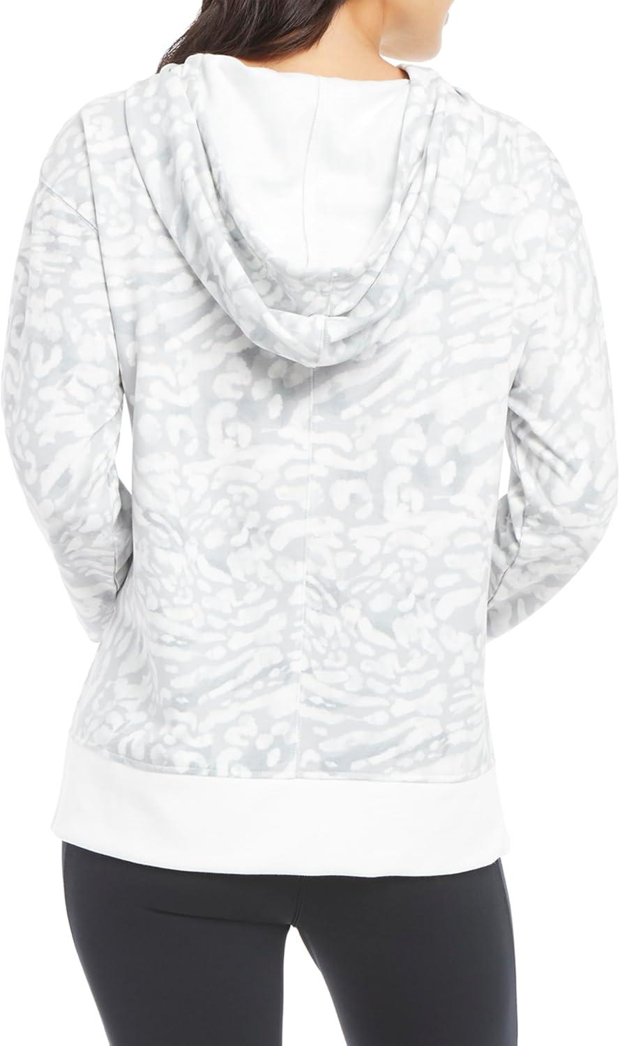Danskin Women’s Side Slit Pullover Hoodie Sweatshirt(Silver Leopard Print)