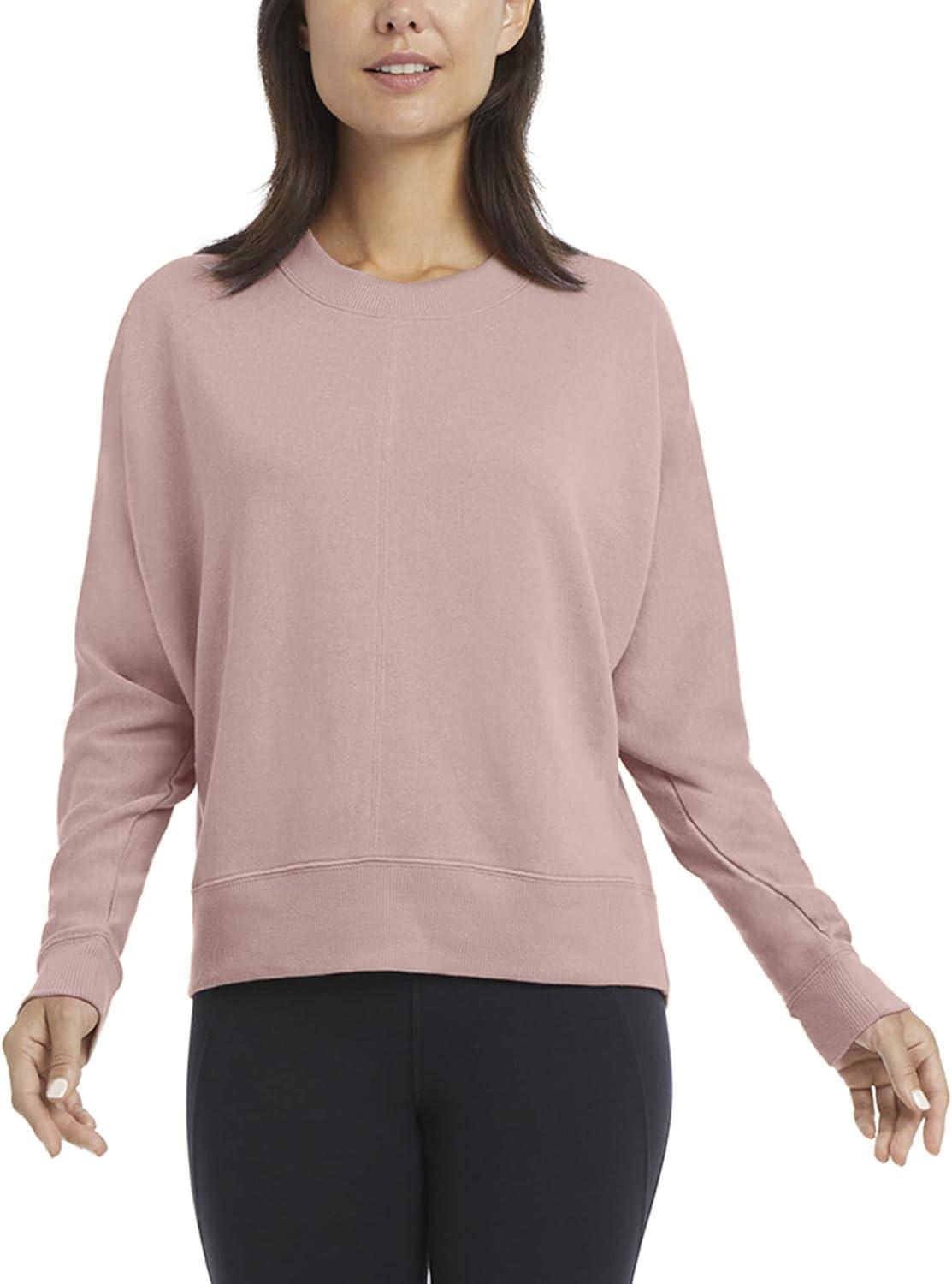 Danskin womens Long Sleeve Wash Pullover Sweatshirt(Peach Pink)